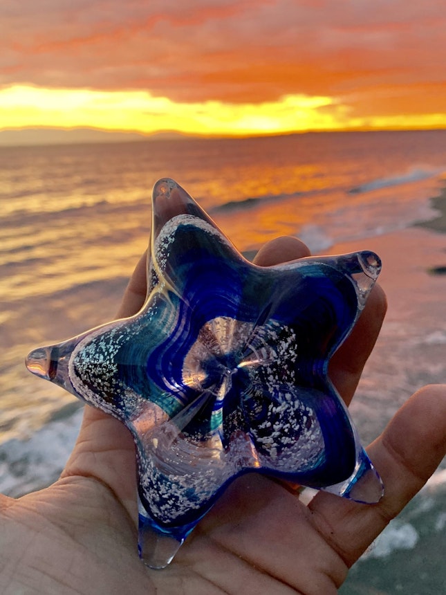 Diese gläsernen Herzen, Kugeln und Seesterne fungieren als schönes, sowie außergewöhnliches Denkmal. Die wundervollen Erinnerungsstücke kommen einschließlich Samtbeutel, Zertifikat und Radierung. Die Angel Wings-Anhänger, sowie die beleuchteten Blasen sind zeitlos und für die Ewigkeit gemacht.